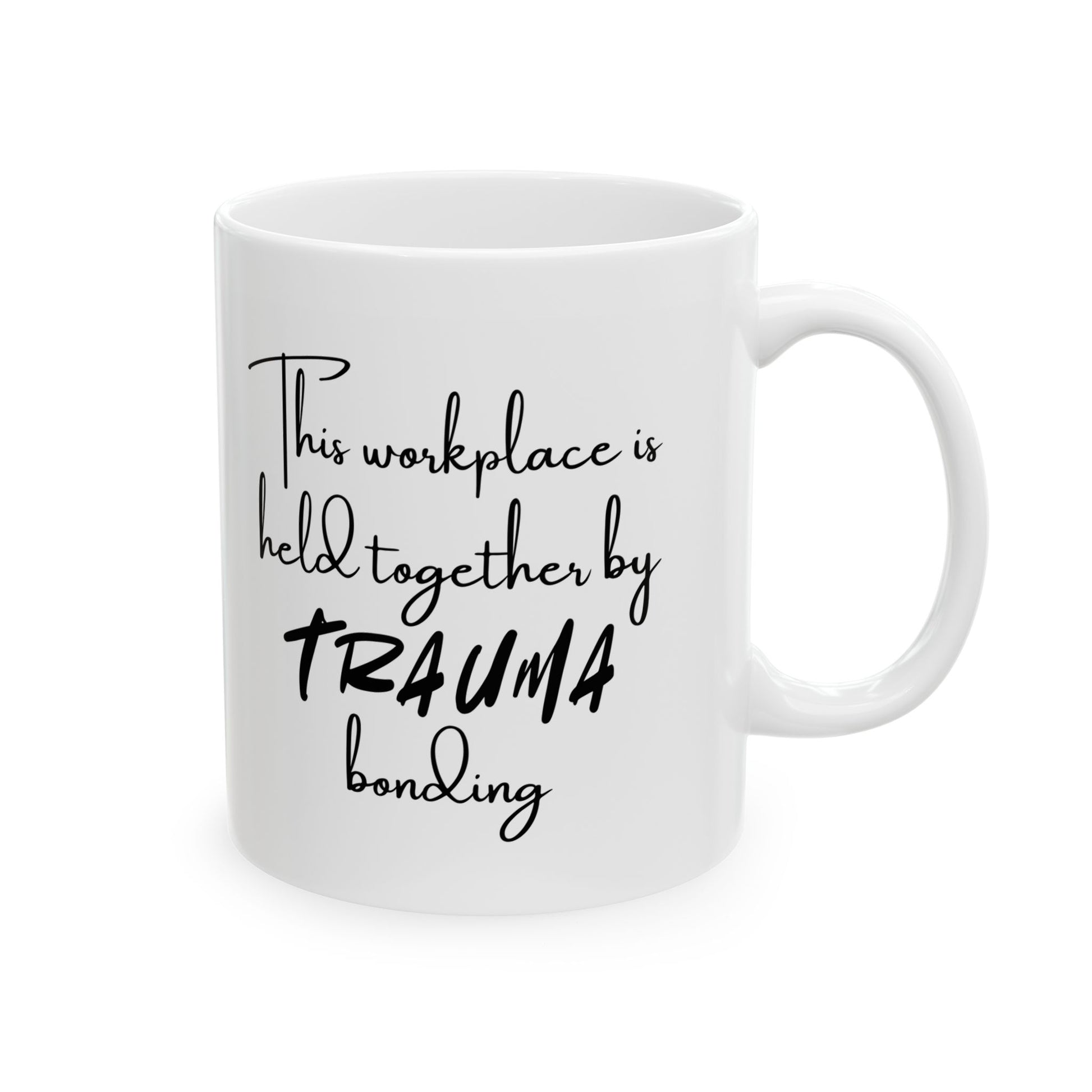 Ceramic Mug with Humor, Funny Office Mug, Gifts for Coworkers, Coffee Cup for Work, Trauma Bonding Mug, Humor for Stress Relief